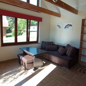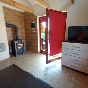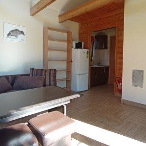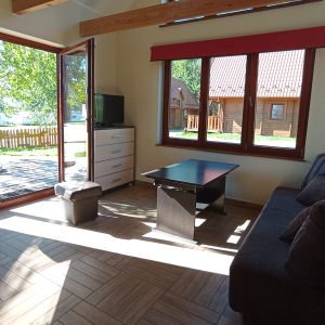 W salonie znajduje się telewizor oraz wolnostojący kominek opalany drewnem. W sezonie zimowym dodatkowo do dyspozycji są także elektryczne grzejniki.