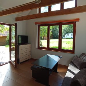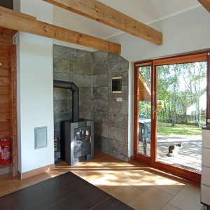 W salonie znajduje się telewizor oraz wolnostojący kominek opalany drewnem. W sezonie zimowym dodatkowo do dyspozycji są także elektryczne grzejniki.