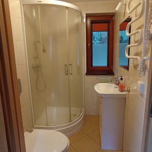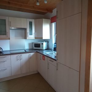 Parter domku składa się z salonu, jadalni, kuchni oraz łazienki. Na wyposażeniu kuchni znajduje się pełnowymiarowa lodówka z zamrażalnikiem, płyta indukcyjna, kuchenka mikrofalowa, czajnik oraz podstawowa zastawa do samodzielnego przygotowywania posiłków.