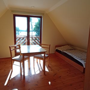 – 2-3 osobowy na parterze (jedno łóżko + dwuosobowa sofa),