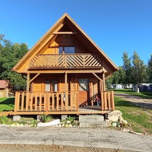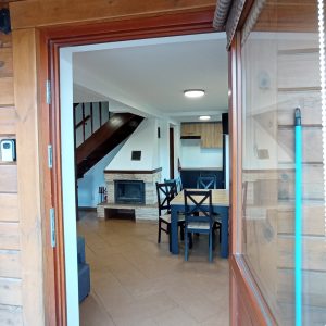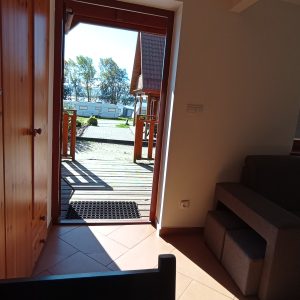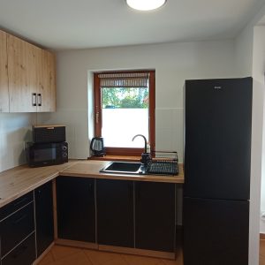 Parter domku składa się z salonu, jadalni, kuchni oraz łazienki. Na wyposażeniu kuchni znajduje się pełnowymiarowa lodówka z zamrażalnikiem, płyta indukcyjna, kuchenka mikrofalowa, czajnik oraz podstawowa zastawa do samodzielnego przygotowywania posiłków.
