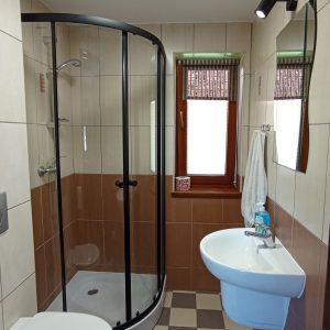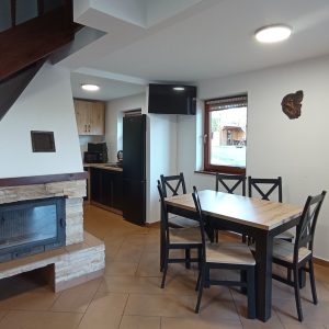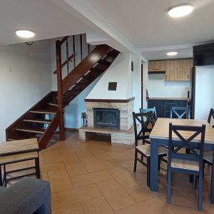 Dodatkowo w salonie jest telewizor oraz wolnostojący kominek, opalany drewnem. W sezonie zimowym do dyspozycji są także grzejniki elektryczne.