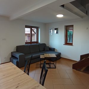 Znajdziecie w nim dwie sypialnie usytuowane na piętrze z czterema pojedynczymi łóżkami. Dodatkowo, na parterze w salonie dwuosobową, rozkładaną sofę.